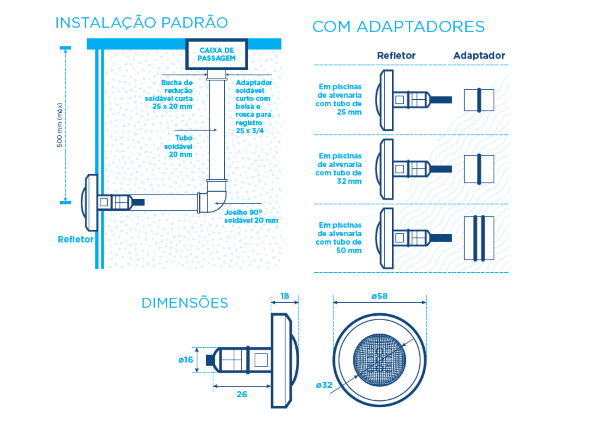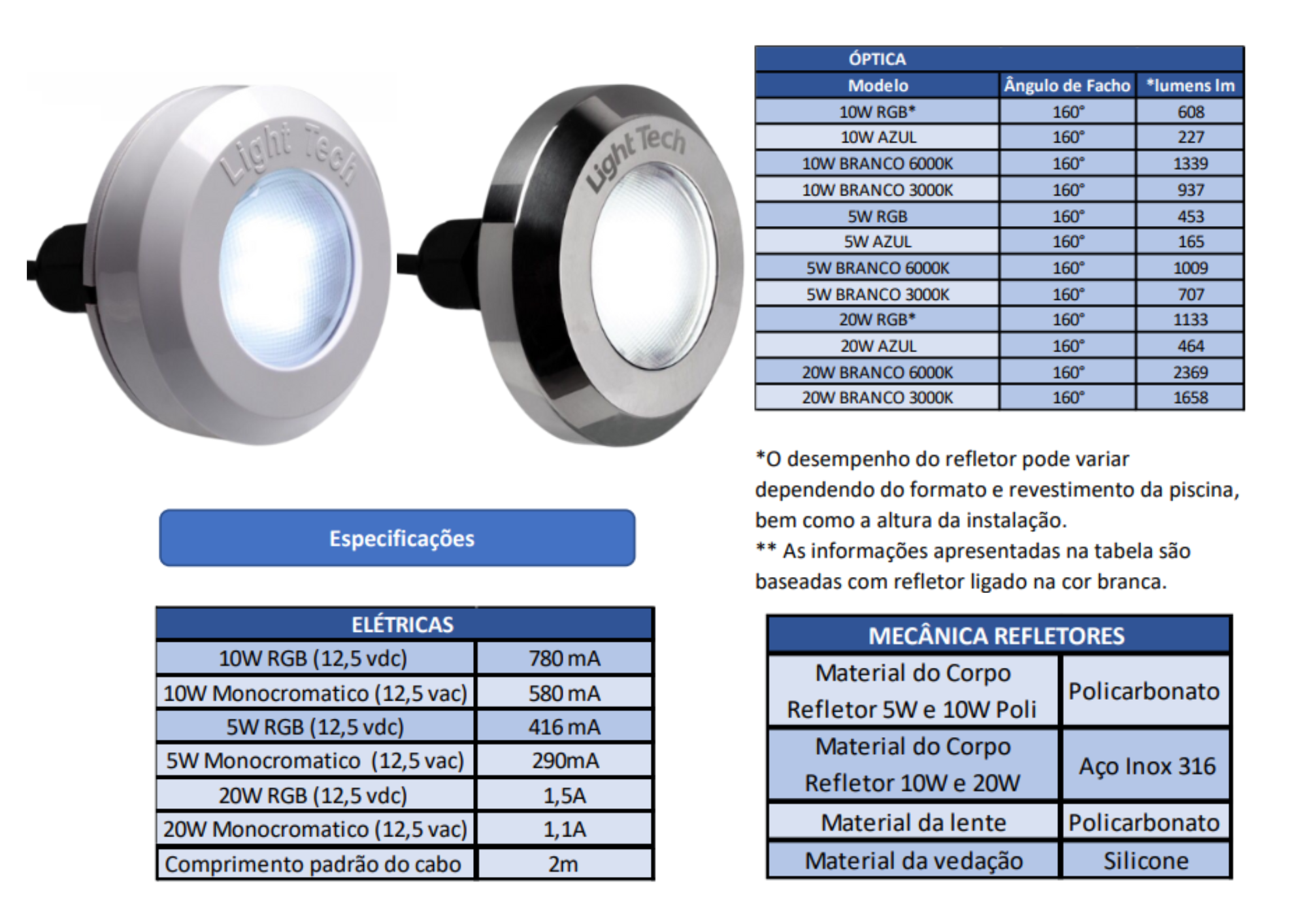 Nas cores: RGB, Azul, Branco 3000K e Branco 6000K